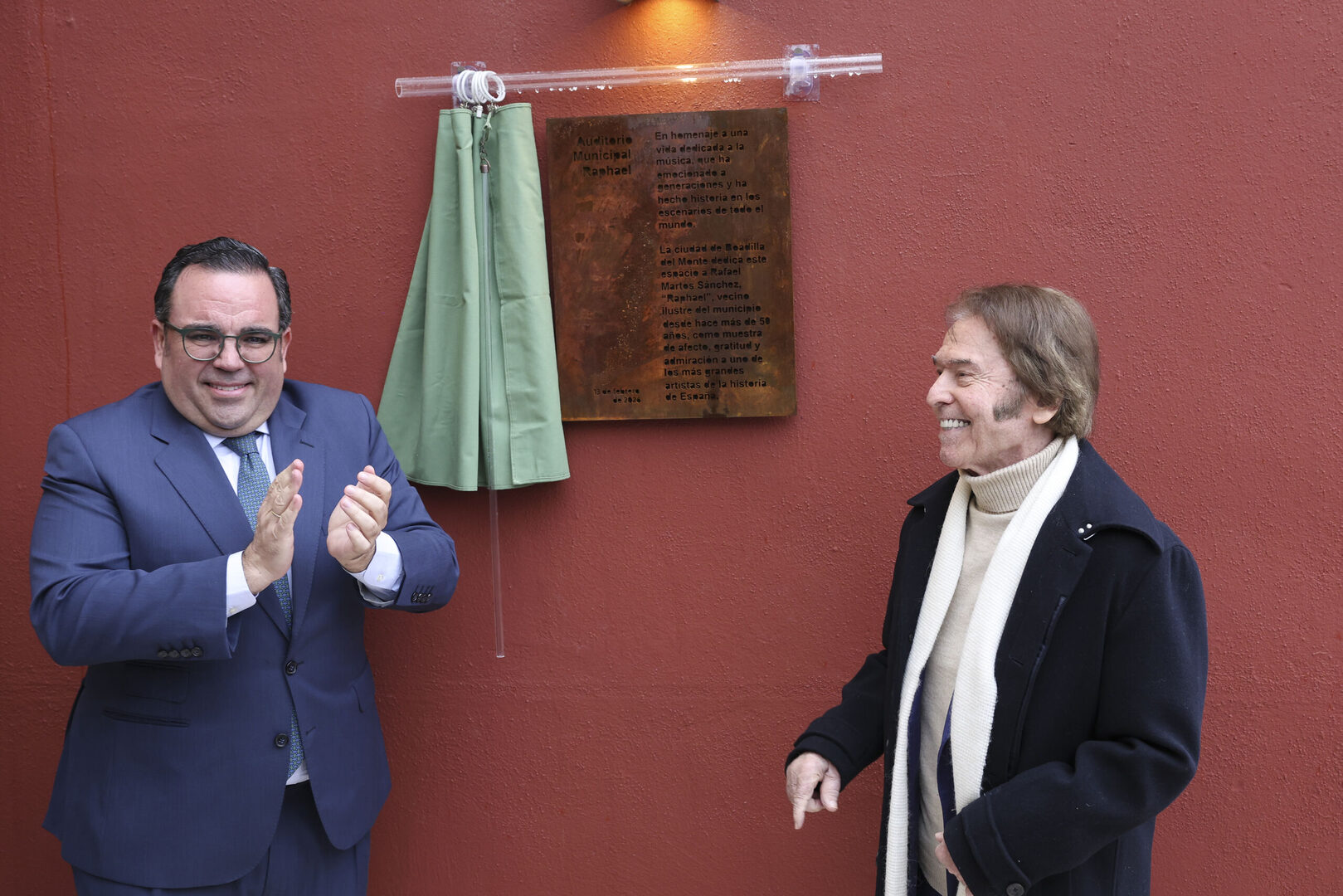 Se descubrió una placa que lleva su nombre y estuvo acompañado por el alcalde de la localidad, Javier Úbeda, y a continuación firmó en el Libro de Honor de Boadilla del Monte. Antes de finalizar el acto, el cantante Pablo López, y alumnos y profesores de la Escuela de Música y Danza del municipio, interpretaron éxitos del cantante como "Escándalo" o "Yo soy aquel".