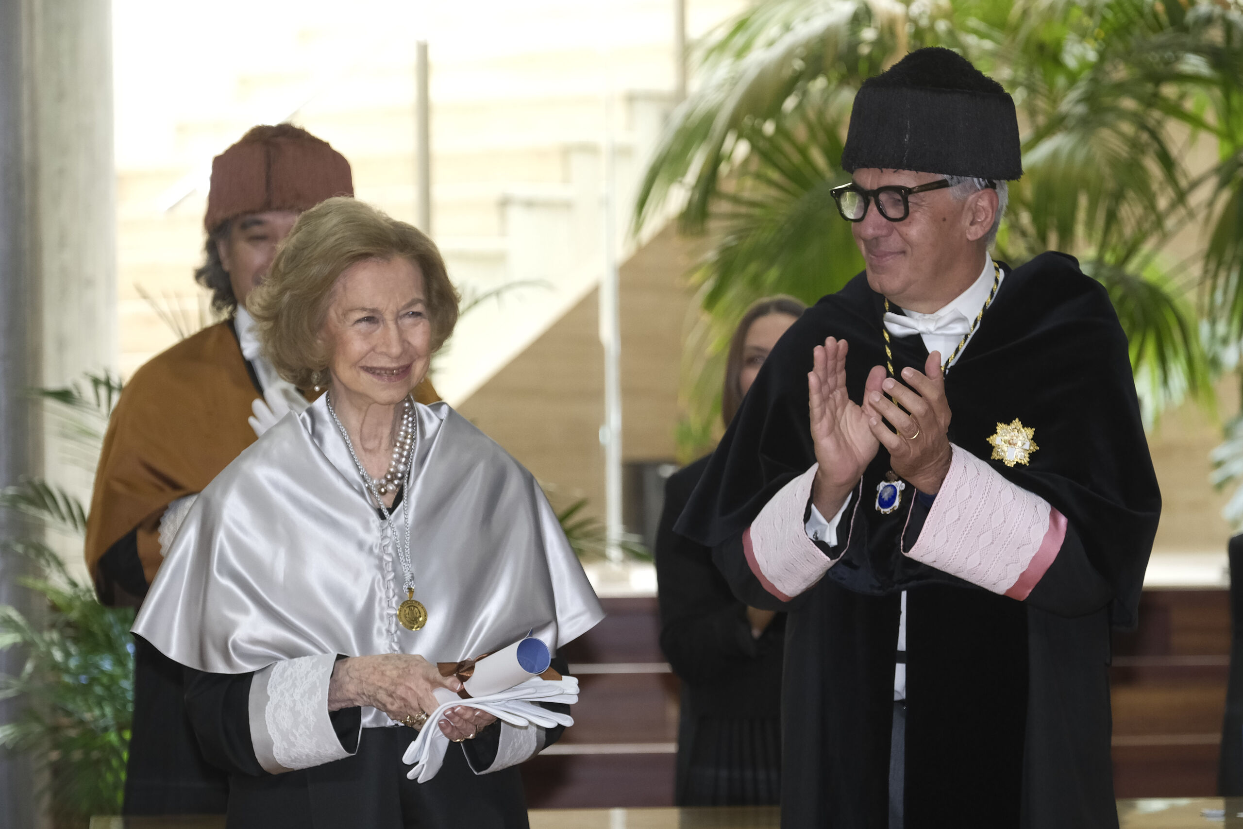 Tras su reaparición en Vizcaya, Doña Sofía recogió este jueves el Premio Gorila 2024, un galardón concedido por Loro Parque Fundación que pone en valor su compromiso sostenido con la biodiversidad y el bienestar animal. A este reconocimiento se ha sumado, este viernes, su solemne investidura como Doctora Honoris Causa por la Universidad de Las Palmas, una distinción que se une a las ya recibidas por la Universidad de Valladolid y la San Pablo CEU.