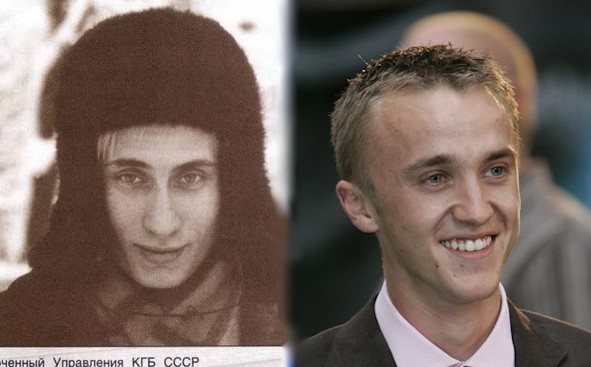 Uno de los protagonistas juveniles de la saga Harry Potter, Tom Felton, es muy parecido a un joven Vladimir Putin, al menos, desde el ángulo de estas fotografías. ¿Algún parecido familiar?