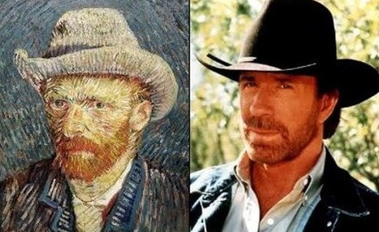 El mítico pintor Vincent Van Gogh tiene una barba y un sombrero similar al del no menos conocido Chuck Norris. Ignoramos si a Norris se le dan igual de bien los pinceles.