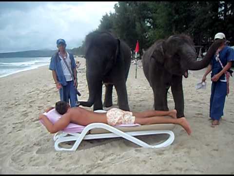 Darse un masaje en la playa es ya una práctica muy extendida en el periódo vacacional, pero que sea un elefante el que practica el masaje...