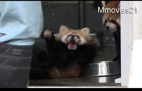 Un terriblemente asustadizo panda rojo es sorprendido por una inmensa bota, desde su punto de vista, que le deja patas arriba mientras come plácidamente.