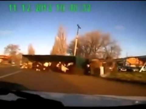 Un camión que transportaba una carga de vacas se estrellan en la región de Krasnodar, en el sur de Rusia. El video muestra un vehículo grande que vuelca y lanza a las vacas que vuelan a través de la autopista.