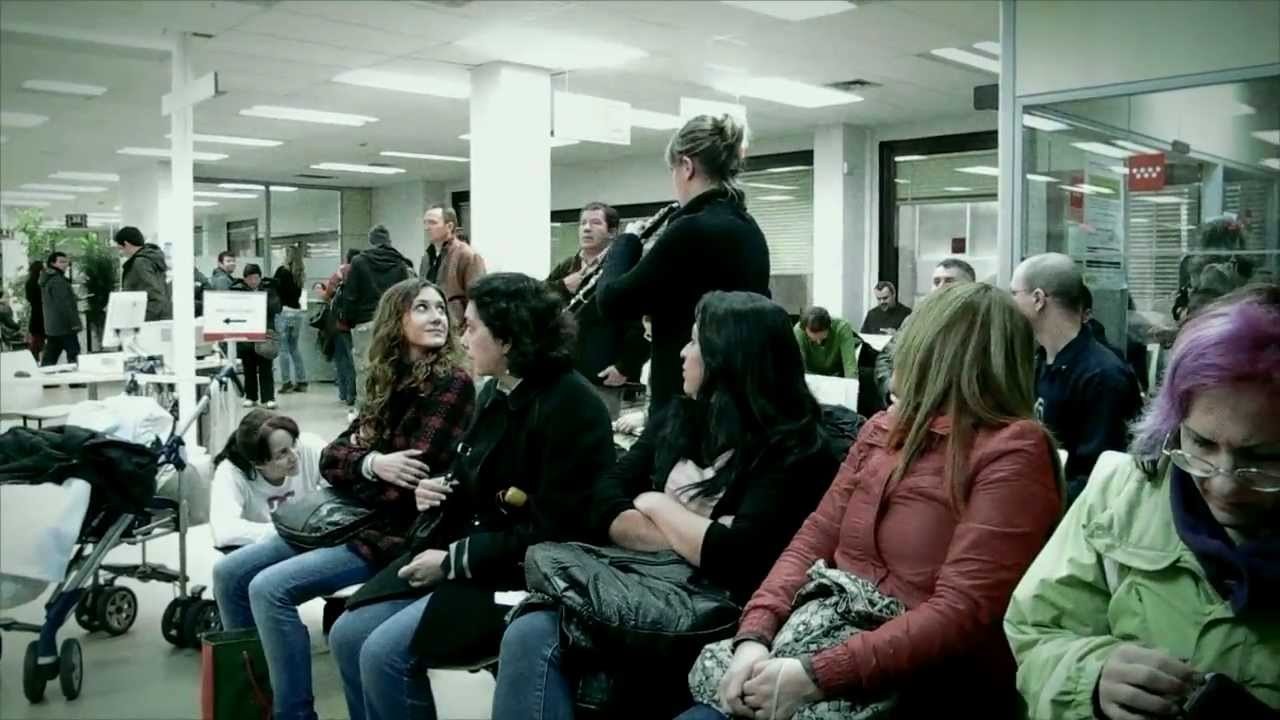 No todas las oficinas del empleo españolas son aburridas. Así lo han demostrados un grupo de músicos que han participado en un flashmob interpretando una versión de la canción "Here Comes the Sun" de los Beatles