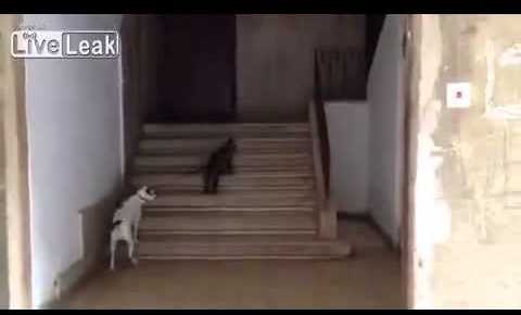 Un perro nunca fue tan pusilánime como el de este vídeo. Y el gato, todo un ejemplo para los de su raza.