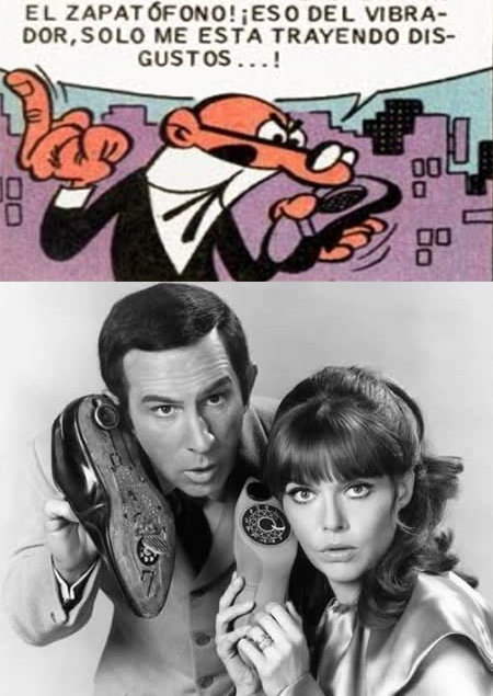 Entre la multitud de inventos paródicos, el zapatófono fue el más divertido e imitado. Ni siquiera a un agente secreto tan megatorpe como el rey del disfraz, Mortadelo, le funcionaba. (Ver vídeo de seis distintos teléfonos de "Superagente 86")
