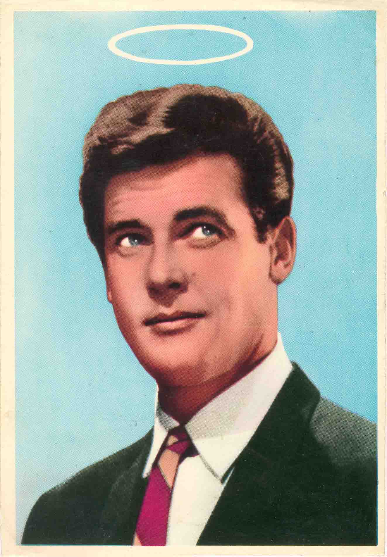 Roger Moore fue el mejor dandy aventurero de la televisión inglesa antes de interpretar a James Bond en 1973. Las novelas de Simon Templar las escribió Leslie Charteris entre 1928 y 1963. Se insinuaba que era un ladrón, un moderno Robin Hood de la delincuencia. La serie televisiva comenzó en 1962 y se mantuvo en antena hasta 1969. (Ver vídeo de la cabecera en blanco y negro de "El Santo")