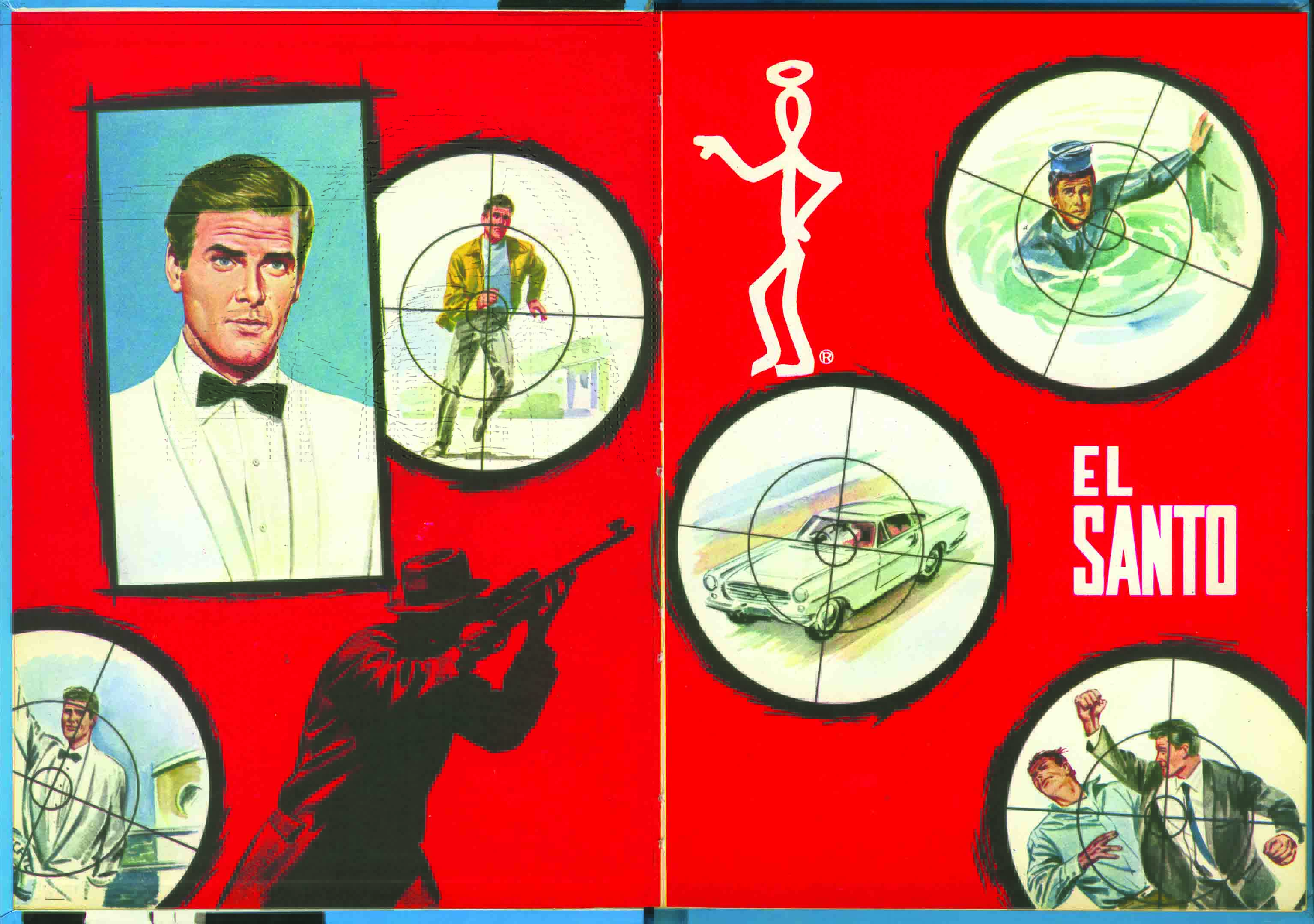 En las múltiples aventuras de El Santo en el cómic, se potenció su vertiente de agente secreto, una especie de James Bond en lucha contra la URSS. La versión cinematográfica de Roy Baker, El Santo (1966), tenía unos impresionantes títulos de crédito de Chamber + Partners, con una sugerente música de Edwin Astley. (Ver vídeo de la cabecera del filme "El Santo" (1966)