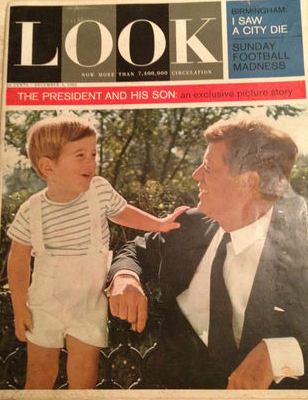 La revista LOOK llevó a padre e hijo a la portada. Los Kennedy, como cualquier familia real, hacen que se vendan revistas. Más con niños por medio.