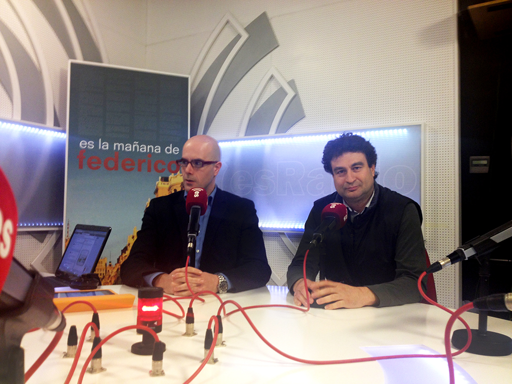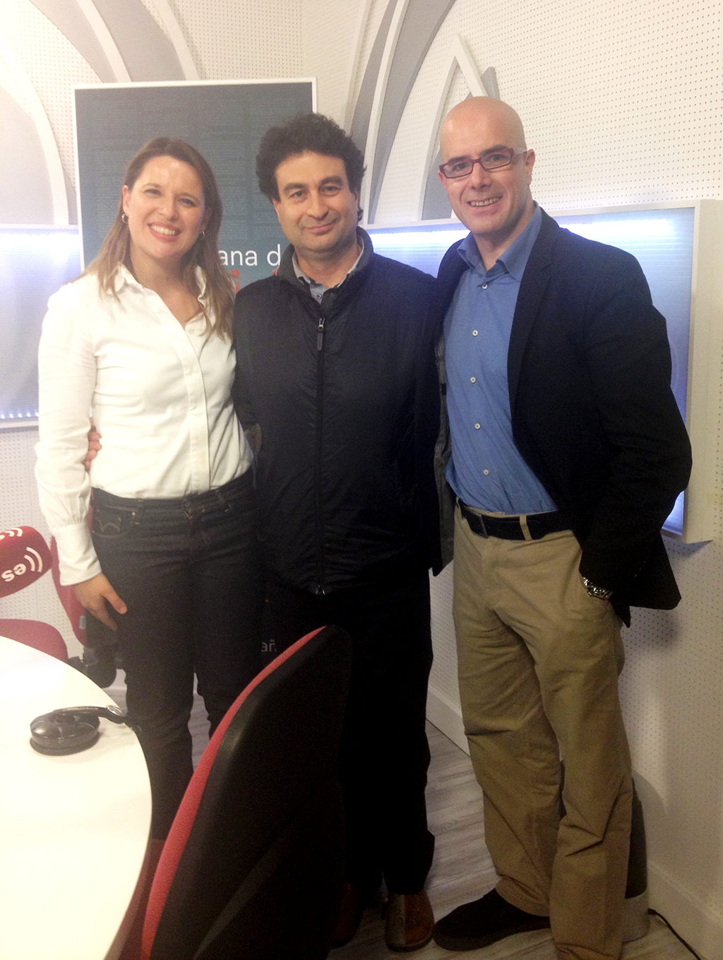 Rodeado de Isabel González, subdirectora de Es la mañana de Federico, y el colaborador Alberto Fernández.