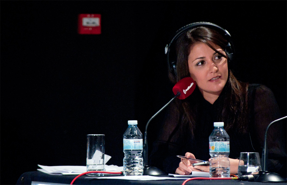 Yésica Sánchez, productora y redactora del programa, muy pendiente de la entrevista a uno de los invitados.