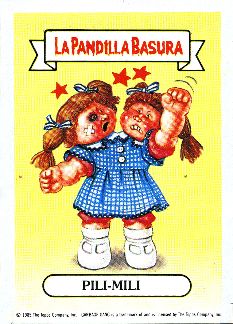 "La pandilla basura", cuyo nombre en inglés es “Garbage Pail Kids”, es una parodia de las muñecas repollo “Cabbage Patch Kids”, —las famosas muñecas Repollo creadas por Xavier Roberts, de las que se vendieron 100 millones—. Estos cromos fueron lanzados en EEUU en 1985. (Ver vídeo del anuncio de las muñecas Repollo)