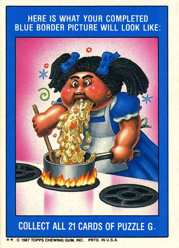 Las imágenes de niños vomitando, despellejándose vivos como quien se quita la piel como una camiseta o asándose en una barbacoa, ordeñados, chafados por las ruedas de un coche o planchados como un gofre dan una parca idea del nivel estrafalario de estos cromos que causaron sensación entre los niños de medio mundo. (Ver vídeo del capitulo 1 de "The Garbage Pails Kids Cartoon")