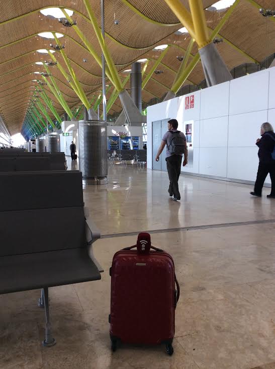 La maleta de María José Peláez y esRadio esperan en el aeropuerto para poder embarcar en el vuelo de Iberia rumbo a Bruselas.