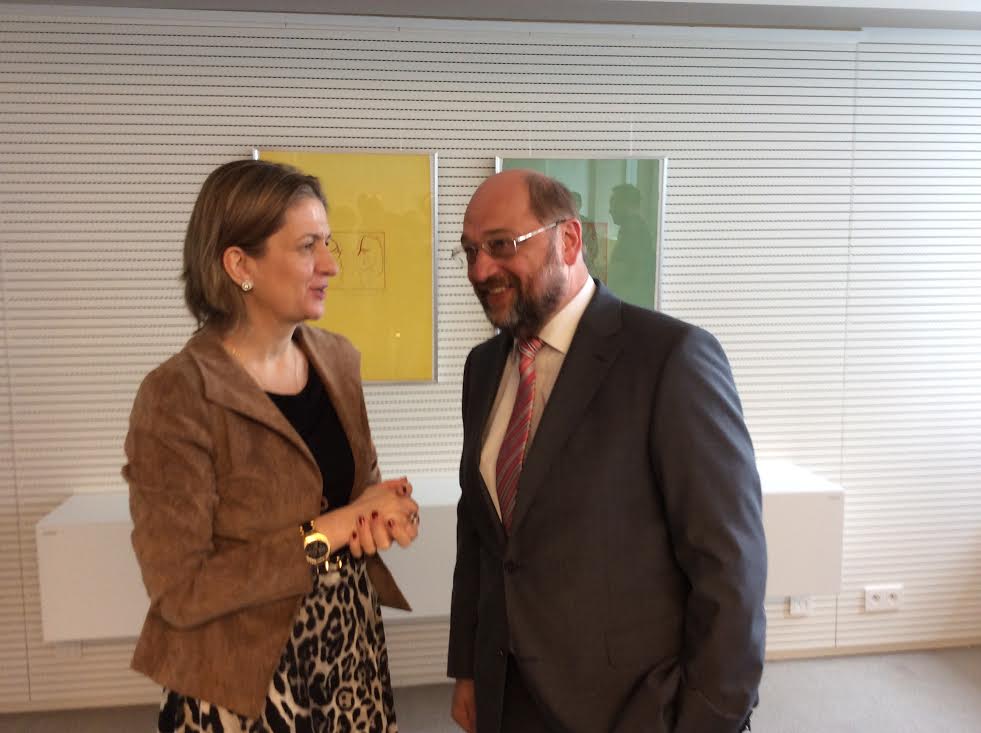 Por la tarde, María José Peláez tuvo la oportunidad de reunirse con distintos miembros del Parlamento Europeo. Entre ellos Martin Schulz, presidente del Parlamento Europeo.