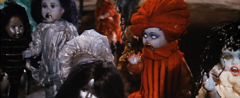 Las famosas muñecas asesinas que tratan de matar a mordiscos a la pobre Barbarella. La ingenua Atronavigatrix cree que son las muñecas de Famosa, pero no. Son las primas malas de Chucky. (Ver vídeo de la secuencia de las "muñecas asesinas")