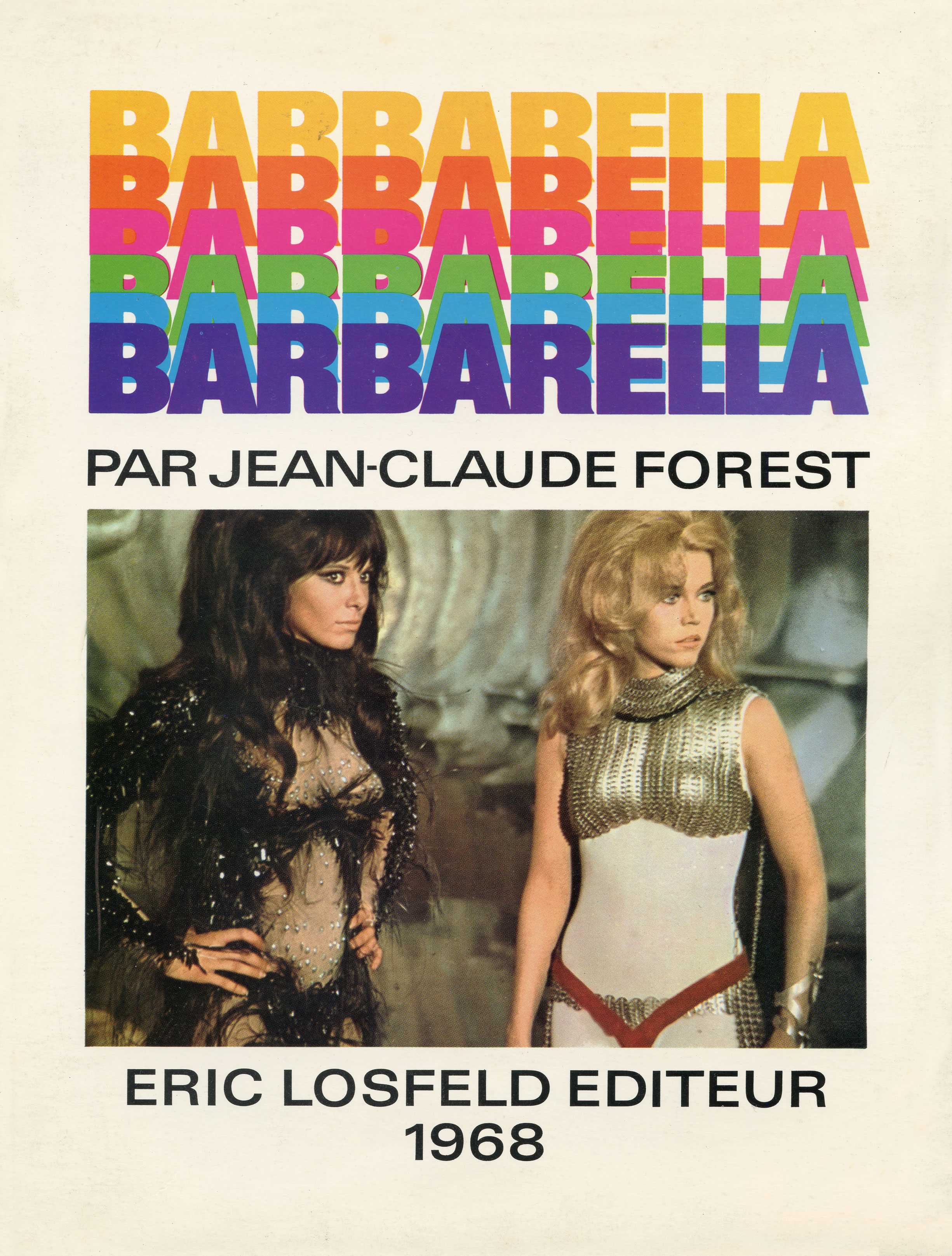 Portada de la reedición de 1968 del tebeo de Jean-Claude Forest con un fotograma de Jane Fonda y Anita Pallenberg.