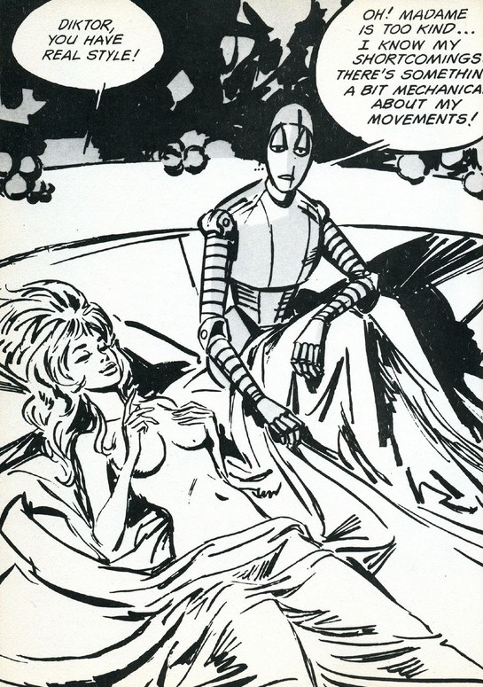 Escena poscoital de Barbarella con el robot Díctor, en la que puede apreciarse el buen hacer de la máquina y la complacencia de la luchadora galáctica.