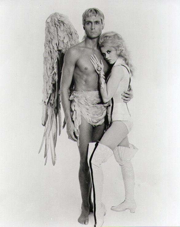 Barbarella enamorada del ángel melancólico, interpretado por John Philip Law.