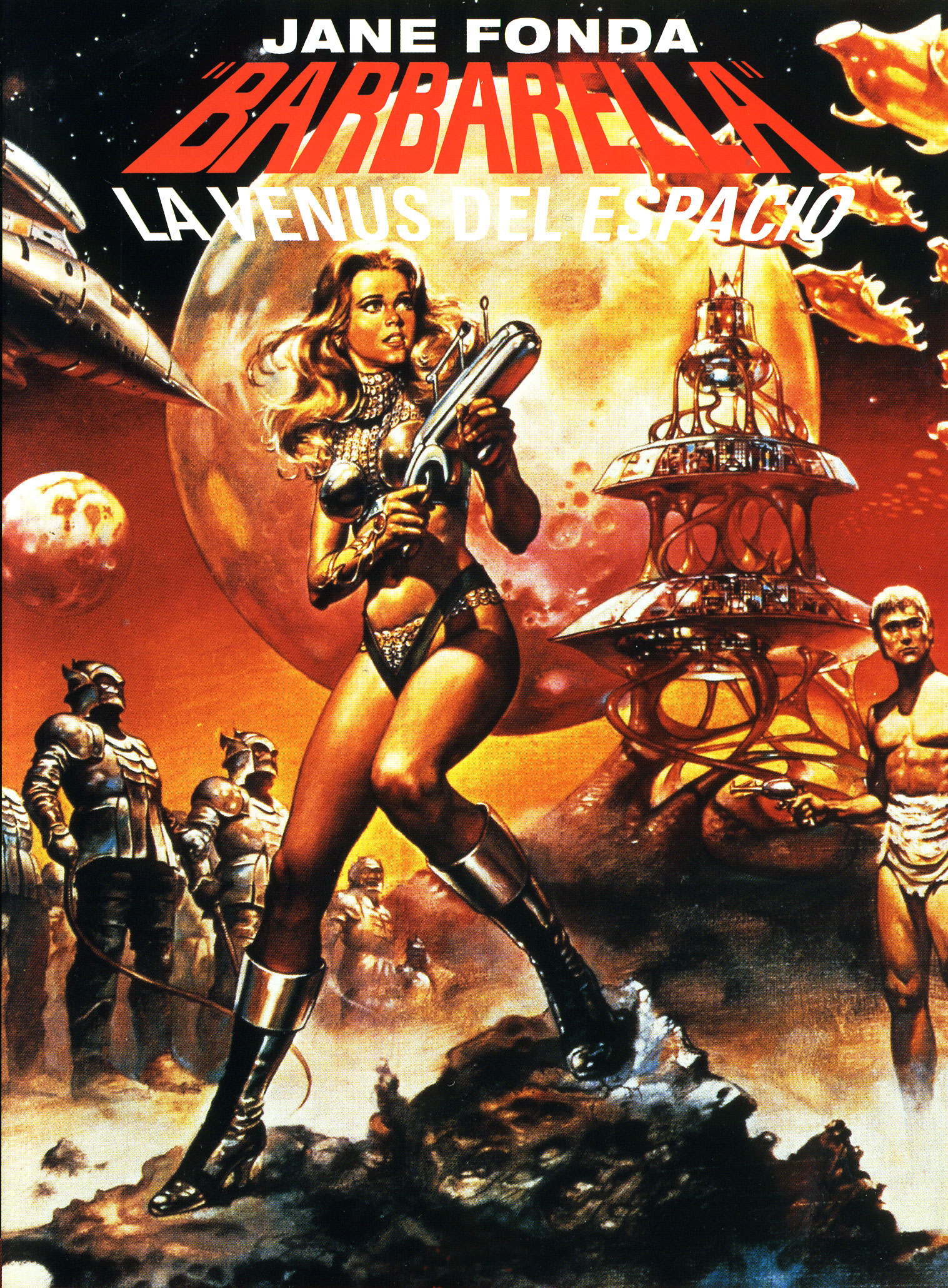Además de un ropero portátil digno de una diosa galáctica, Jane Fonda lleva con garbo espectaculares armas desintegradoras a juego con los trajes metálicos.