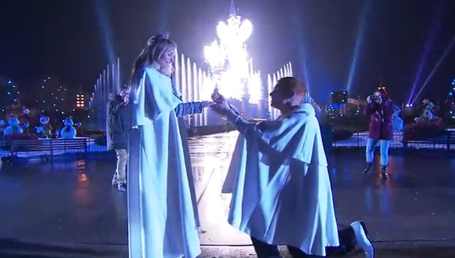 En uno de los parques de atracciones más emblemáticos y reconocibles del mundo, rodeados del universo Disney de luz y color, JPelirrojo, un conocido YouTuber con más de medio millón de suscriptores en su canal de YouTube le propuso matrimonio a su novia Rocío (Roenlared,), con la que lleva 9 años de relación. Ataviados con capas blancas el gran momento llegó cuando apareció la frase proyectada en el castillo de la Bella Durmiente «¿Ro, quieres casarte conmigo?» . Al finalizar, una gran traca de fuegos artificiales y la banda sonora de la película Frozen pusieron el incomparable broche final a la pedida de mano.