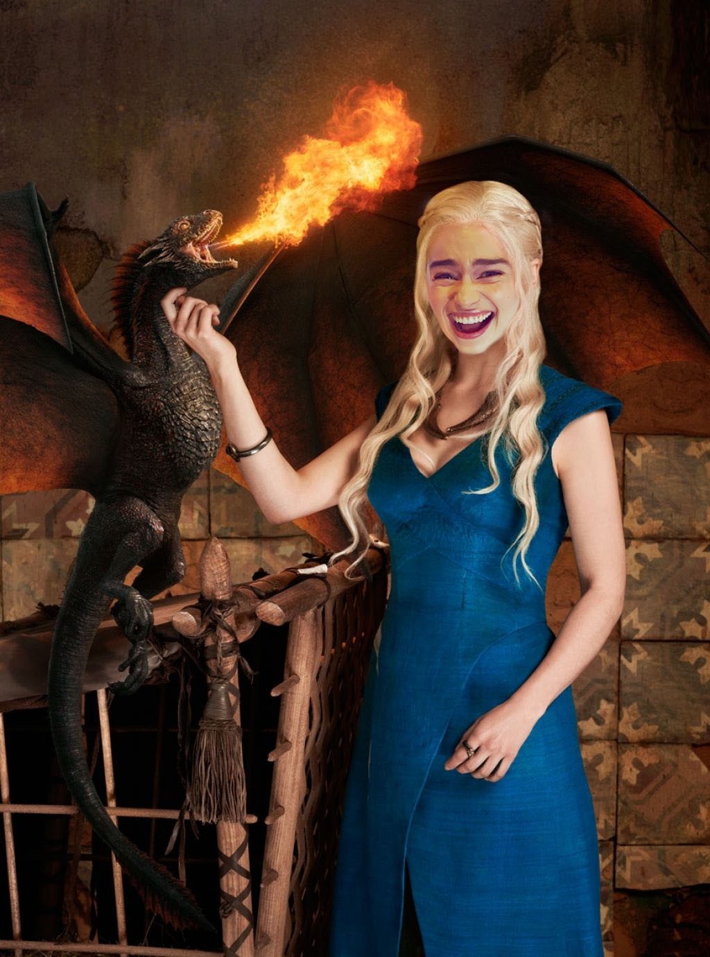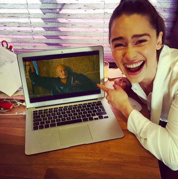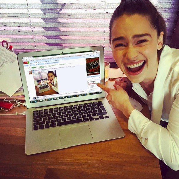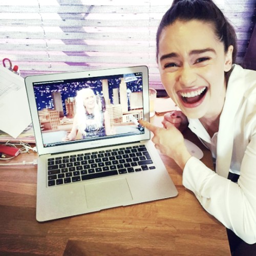 Emilia Clarke, quien da vida a Daenerys Targaryen en Juego de Tronos, publicó una imagen en su cuenta de Instagram riéndose de la imitación de Kristen Wiig en el programa Tonight Show with Jimmy Fallon. Dicha fotografía se ha convertido en el centro de los memes de las redes sociales poniéndola en diversas situaciones.
