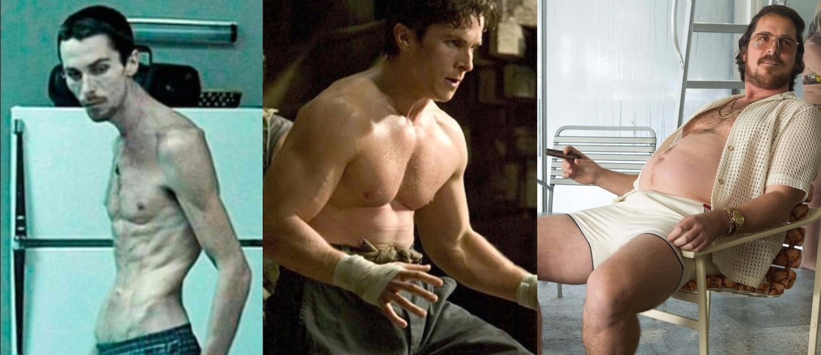 Christian Bale es uno de los actor de extremos y muy camaleónico. El físico límite en El Maquinista lo consiguió adelgazando 29 kilos en tan solo cuatro meses. Y lo hizo (mal)viviendo a base de atún, yogur y manzanas. Su intención era pasar de 84 kilos a 45, pero los nutricionistas se lo impidieron y se quedó en 55 kilos. Su siguiente cambio fue para interpretar a Bruce Wayne en la saga Batman de Christopher Nolan, para la que recuperó el el peso perdido y ganó 18 kilos adicionales de músculo, llegando a superar los 100 kilos de peso. Para su papel en La gran estafa americana, dijo adiós a los músculos y hola a una gran barriga engordando 20 kilos.