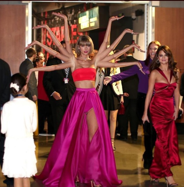 Cualquier imagen, por normal que parezca, es capaz de hacerse viral en cuestión de horas. La última víctima ha sido la cantante Taylor Swift, que se llevó tres premios durante la última edición de los Grammy. No sabemos por qué levantó los brazos en aquel momento, pero Internet ya se ha encargado de hacer todo tipo de montajes absurdos con su postura.