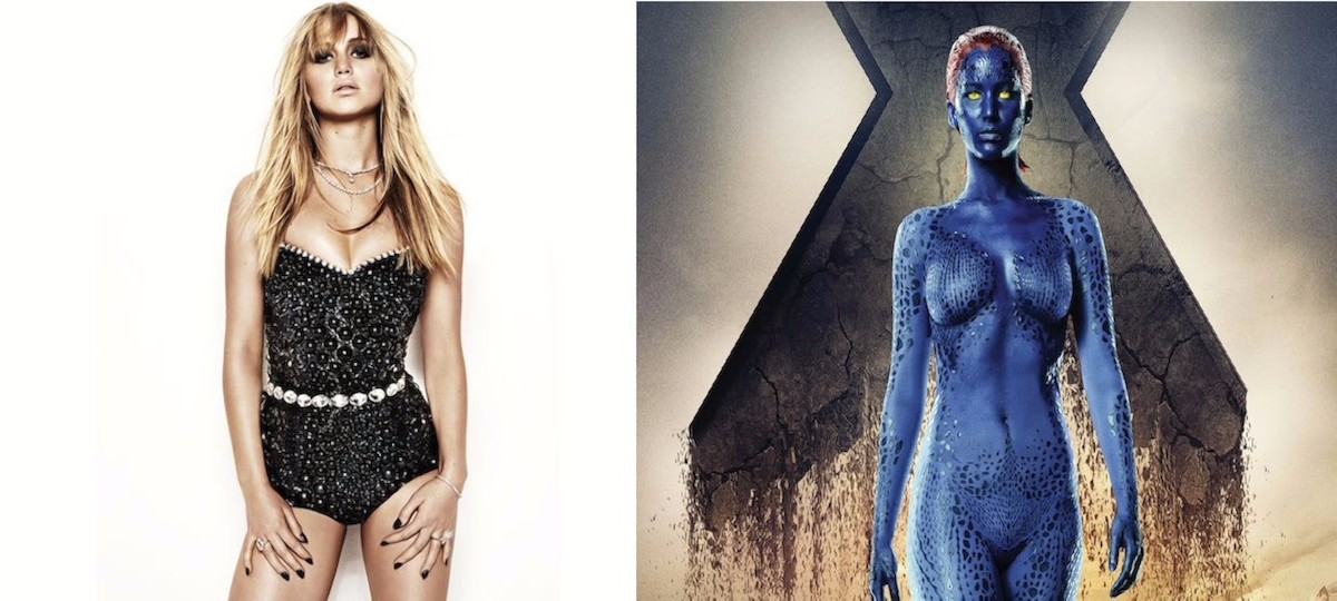 Unas largas sesiones de maquillaje corporal convirtieron a Jennifer Lawrence en el personaje Mística de los X-Men. Aquella pintura le irritaba la piel y se le llegaban a aplicar hasta ocho capas. La actriz terminó abandonando el papel de mutante cansada de tanta pintura.