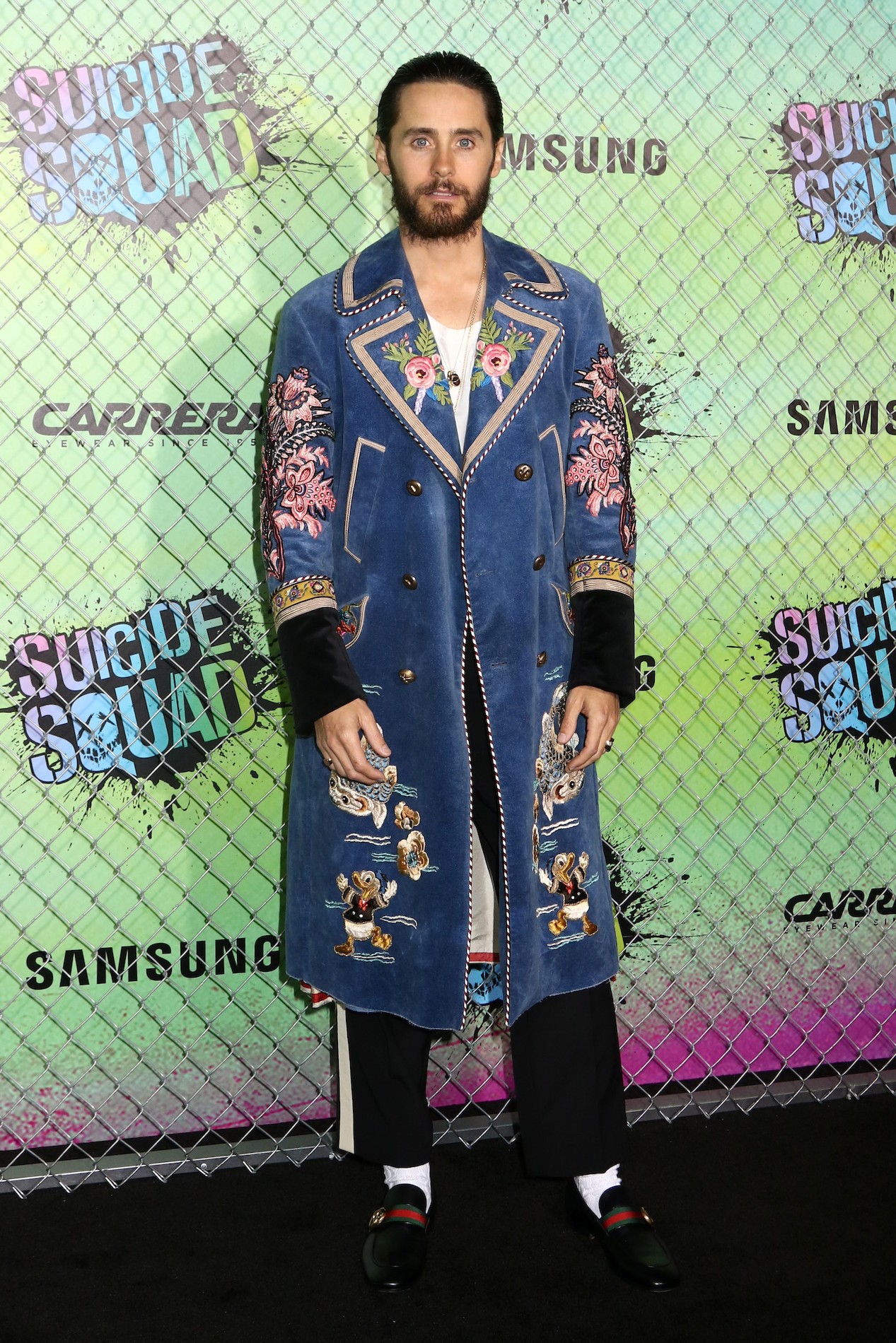 Jared Leto, el nuevo y flamante Joker, nunca pasa desapercibido. El ganador de un Oscar se plantó con un abrigo azul con flores y el Pato Donald bordados y calcetines blancos.