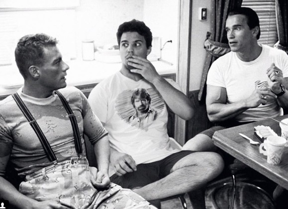 Junto a dos estrellas del cine de acción, Jean-Claude Van Damme y Arnold Schwarzenegger.