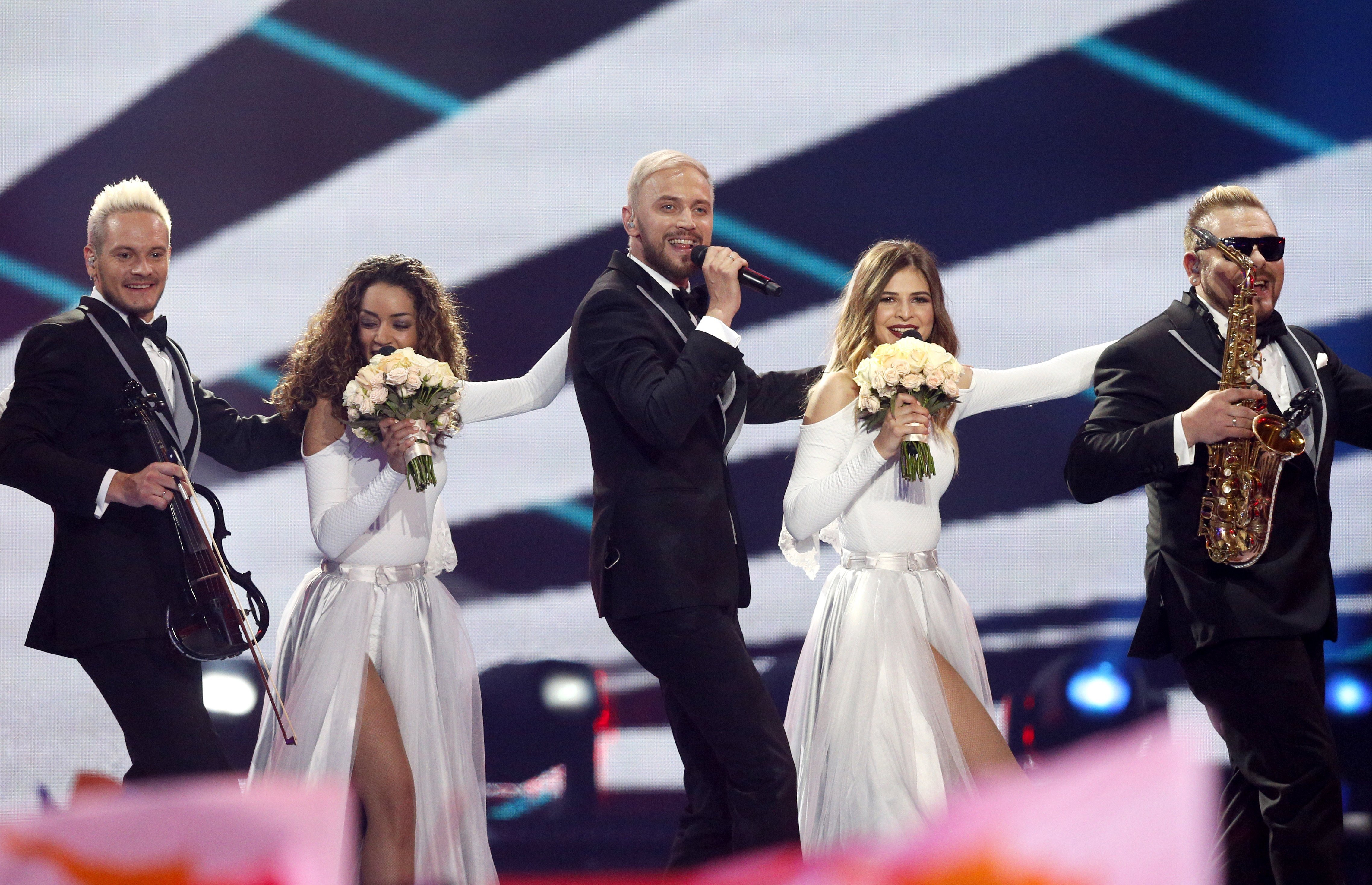 Los miembros de Naviband, de Ucrania, en la final de Eurovisión.