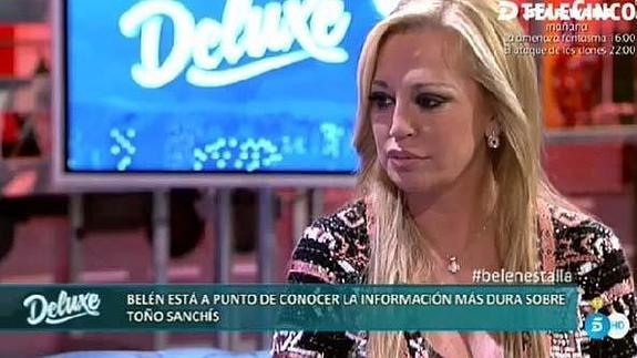 En 2016 y en pleno revuelo mediático por el conflicto con Toño Sanchís, Belén acudió varias veces al plató de Sálvame Deluxe. En abril de aquel año desveló uno de los detalles más demoledores de la estafa de su exrepresentante y mejor amigo. "Se abrió una cuenta para el terremoto de Lorca y de esa cuenta se hacen varias compras en Hollister por valor de 140 euros y 258,39 euros. ¡Qué casualidad! La tienda está en un centro comercial de Majadahonda. Yo hace años que no voy allí, he ido a Pozuelo, curiosamente es ahí donde vive Toño (...) Yo no sé quién abre una cuenta, que ni yo firmo ni yo abro, pero abren una cuenta con mi firma y recaudan 1480 euros. Pido perdón al pueblo de Lorca y a la gente que hizo esos ingresos, yo de mi cuenta ya he dado el dinero al ayuntamiento". La audiencia se mantuvo muy pendiente de la guerra entre Belén y Toño y este 'Belenazo' dejó temblando a la competencia con un 22,9% de share (2.583.000 espectadores).
