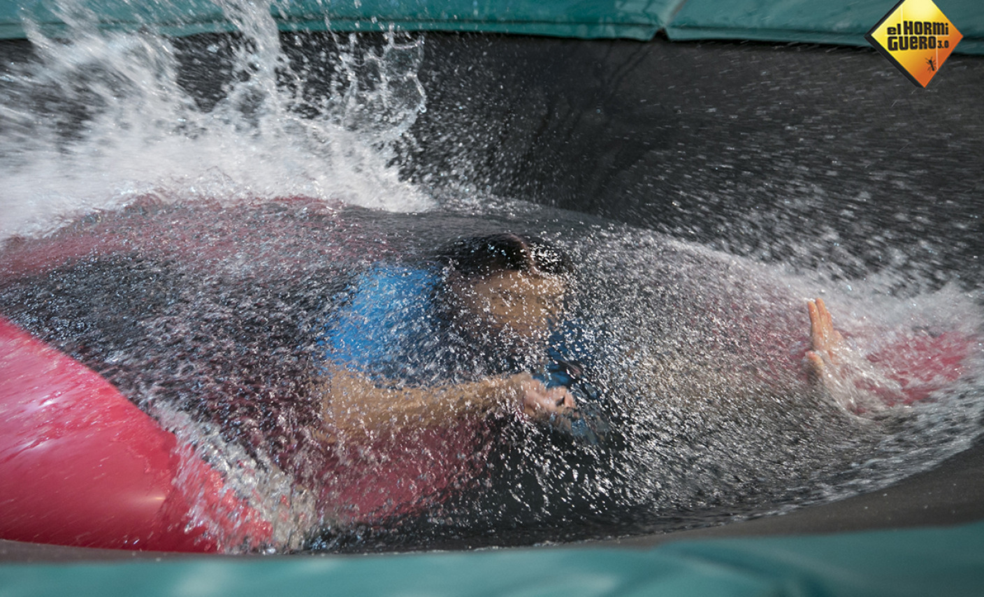 Pilar Rubio se introdujo en un globo lleno de agua que tenía que romper desde dentro.