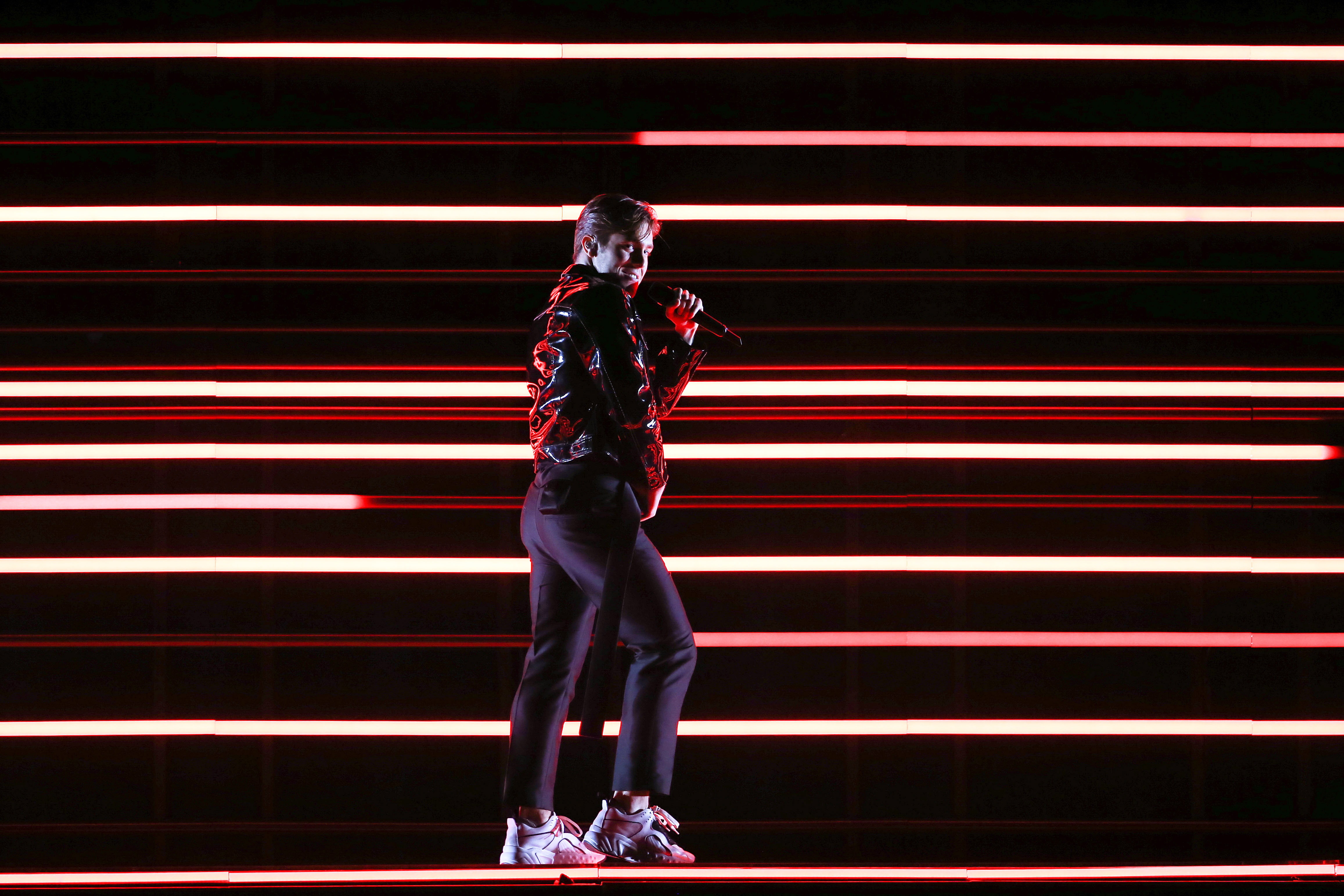 Benjamin Ingrosso representando a Suecia durante la final con la canción \'Dance You Off\'.