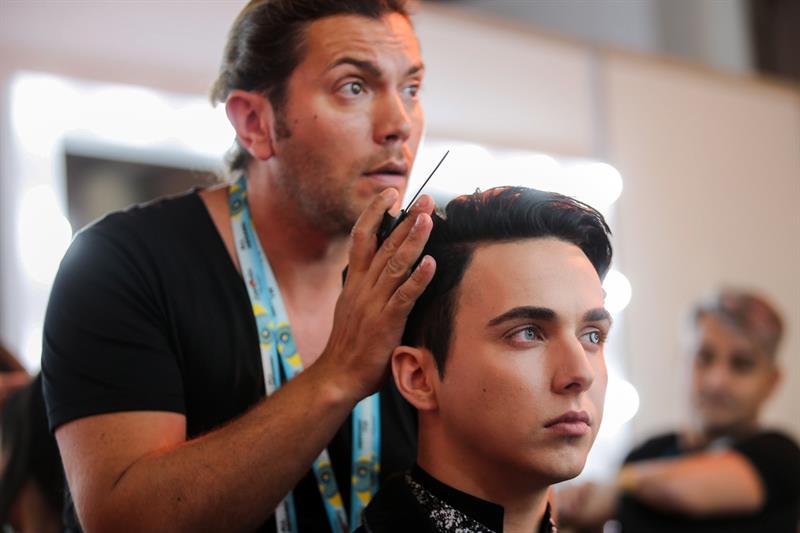 El ucraniano Melovin (R) se prepara para la primera actuación, 'Under The Ladder'.