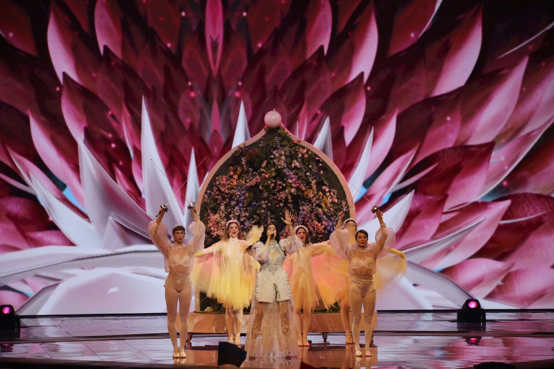 Katerine Duska, de Grecia, cantando "Better Love" mientras sale de una flor.