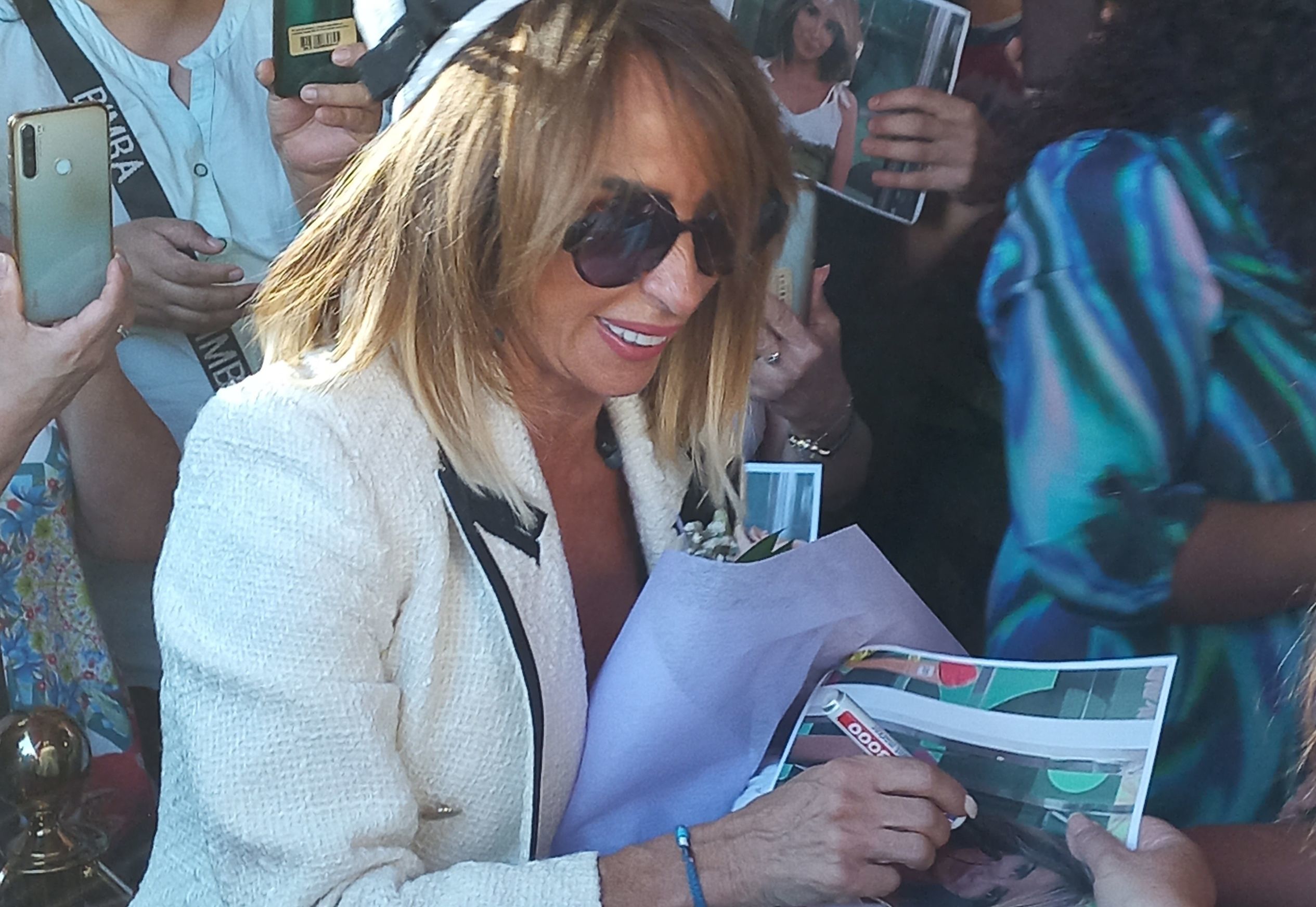 Cantan la sintonía del programa, cantan "no dejes de soñar", pero son las 19.20 y María Patiño no llega. "En vez de estar hablando ahí en la tele, pues que hubiera salido antes", se queja una mujer situada en la puerta. Dice en alto y orgullosa que viene de Cáceres, pero luego reconoce entre risas que vive en el barrio y es amiga de Juani, la dueña de la tienda. "¡Llega en cinco minutos!", se oye. Ambas aceras están ya ocupadas, los vecinos se asoman a la ventana, Germán sufre un poco más, pero por fin aparece la protagonista en una limusina blanca y rosa.