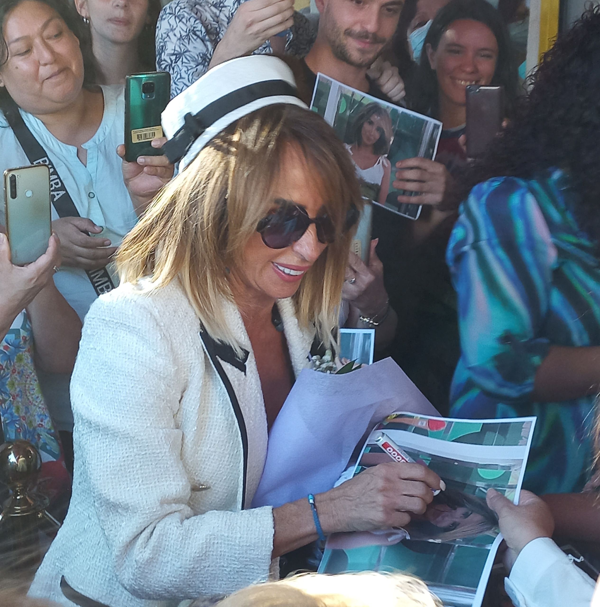A las 19.30 el caos se apodera del lugar, llegan los empujones y algunas ancianas tienen que luchar por mantenerse en pie. Patiño llega a Aluche al más puro estilo Jackie Kennedy con una americana blanca, un pequeño sombrero a juego, gafas de sol, guantes y un bolso de Louis Vuitton. La periodista se da un baño de masas y aprieta la mano a todas las fans que se la ofrecen. Juani la recibe con un ramo de flores: "Bienvenida a mi tienda y que tú puedas ser una más de mis preciosas". La protagonista lo agradece entre un mar de teléfonos móviles y antes de entrar, incluso firma autógrafos. La gente se acerca cada vez más, todos quieren tocarla. Germán ya está sobrepasado.