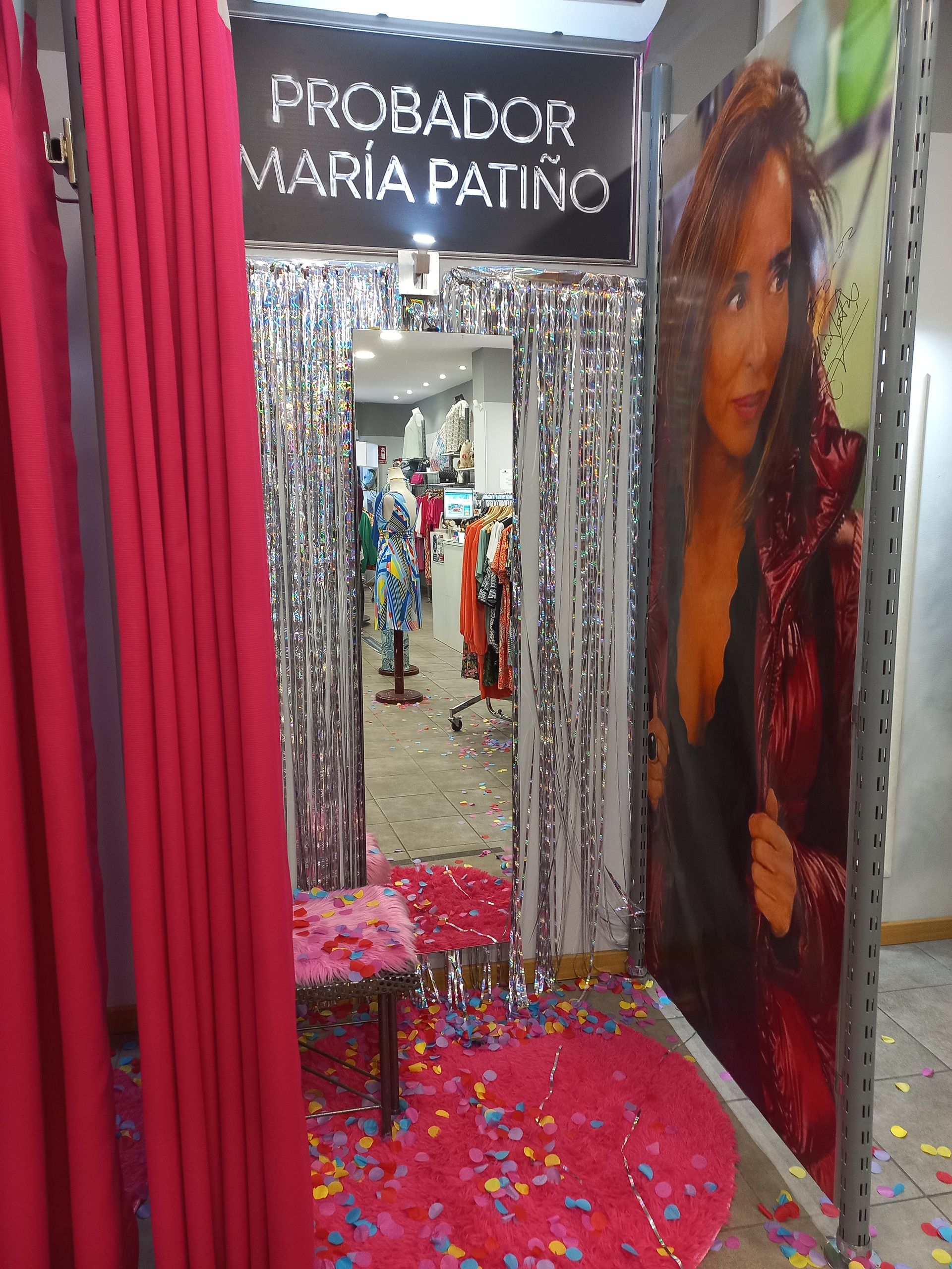 Muy emocionada y entre lágrimas, la presentadora inaugura su probador cortando la cinta roja. Una cortinilla decora el vestidor alrededor del espejo y una placa plateada con las palabras "Probador María Patiño" lo corona, justo debajo del aparato de aire acondicionado. Nadie sabe cómo, pero hasta allí ha llegado Toni Genil. Todo es tan kitsch... Pero ella está encantada y por un momento se le olvida que el jueves por la mañana tuvo que declarar en un juzgado. Una montaña rusa de emociones.