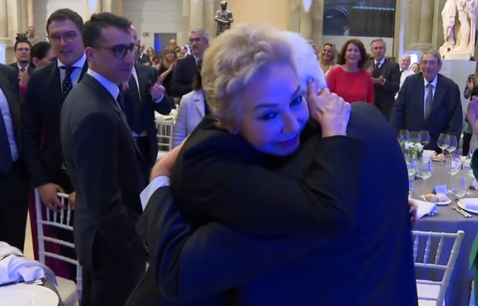 En el evento celebrado n el Claustro del Museo del Prado estuvieron representantes de Mediaset España, pero también del equipo directivo italiano. En las imágenes puede verse la emoción de Vasile, que no puede reprimir las lágrimas ante sus compañeros.