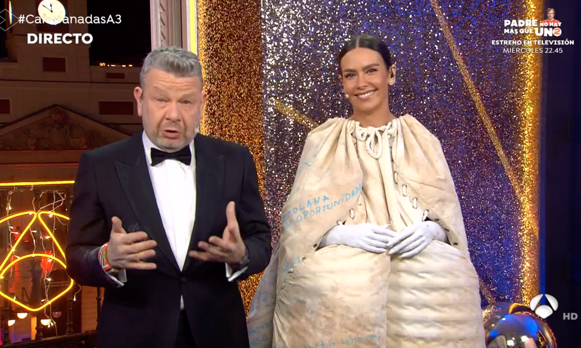 La llegada del bebé y la polémica posterior corrió el riesgo incluso de opacar el vestido de la presentadora, convertido desde hace años en el principal reclamo de las Campanadas de Antena 3 gracias a la habitualmente atrevida labor de Josie, el diseñador de cabecera de la presentadora, y las decisiones comandadas por la propia Pedroche.