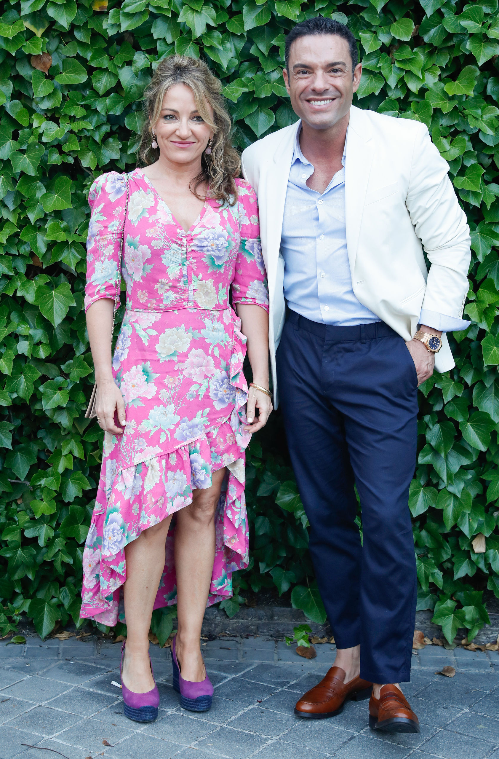 La presentadora de televisión recibió a Cristina Tárrega junto a su marido Juan Muñoz, con el que posó sonriente mientras llegaban el resto de invitados a la vivienda.