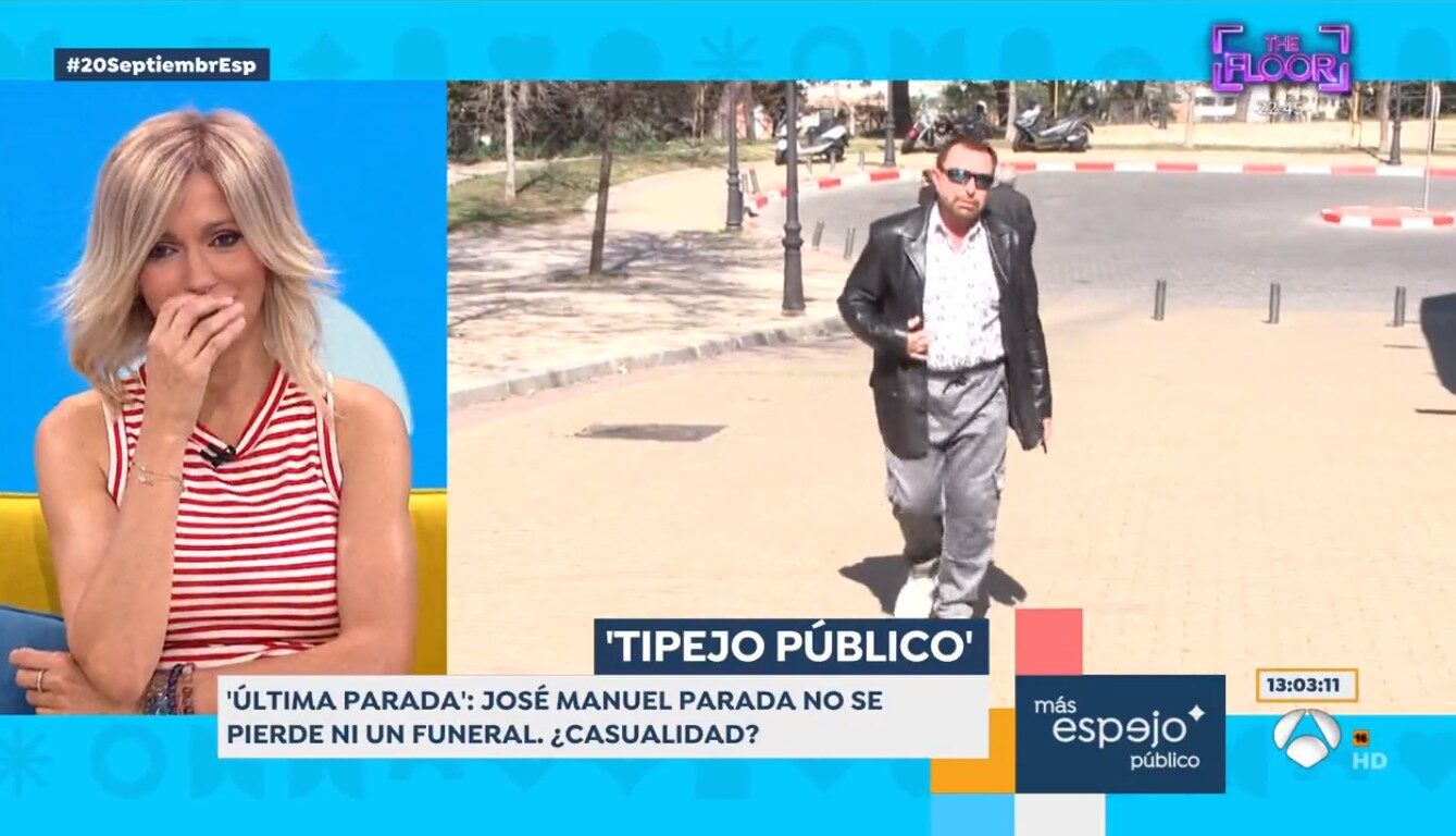 "Última parada: José Manuel Parada no se pierde ni un funeral. ¿Casualidad?", dice el rótulo del vídeo. En él, el reportero asegura que Parada "se está quedando solo porque sus amigos se están yendo uno tras otro al otro barrio". Con la risa cómplice de Susanna Griso de fondo, Escribano recuerda que el presentador ha despedido a cuatro amigos en el último mes porque "todo su alrededor está estirando la pata a un ritmo frenético", lo que le está obligando a "hacer parada en todos los tanatorios existentes de España".