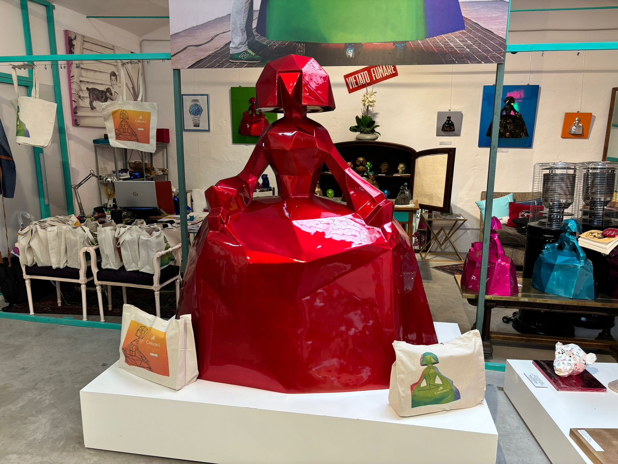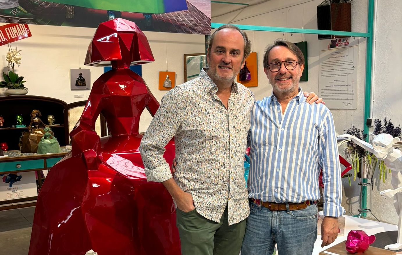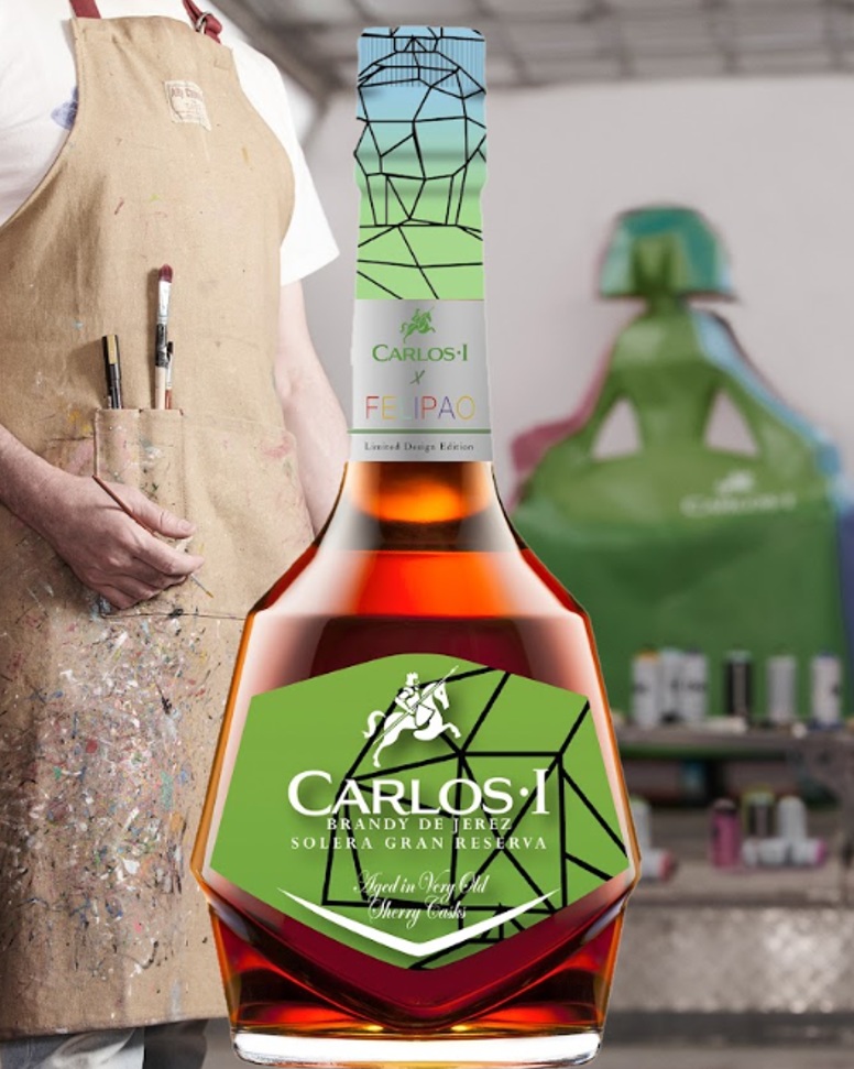 Felipe García-Bañón San-Briz , más conocido por su nombre artístico Felipao, hijo y nieto de diplomáticos, ha vivido en medio mundo y su arte es de sobra conocido en el mundo entero, y sus meninas poliédricas son reconocidas a nivel mundial, sin olvidar, sus perros, monos, tortugas y demás. Su último trabajo lo acaba de presentar, y ha vestido a la emblemática botella de brandy Carlos I, en una edición limitada con un diseño totalmente personal. "La idea es que a este licor de siempre le hemos dado otra visión con un rejuvenecimiento con una nueva coctelería y plasmarlo físicamente en una edición limitada con una manera de color y hacerlo más juvenil" Así me contó.