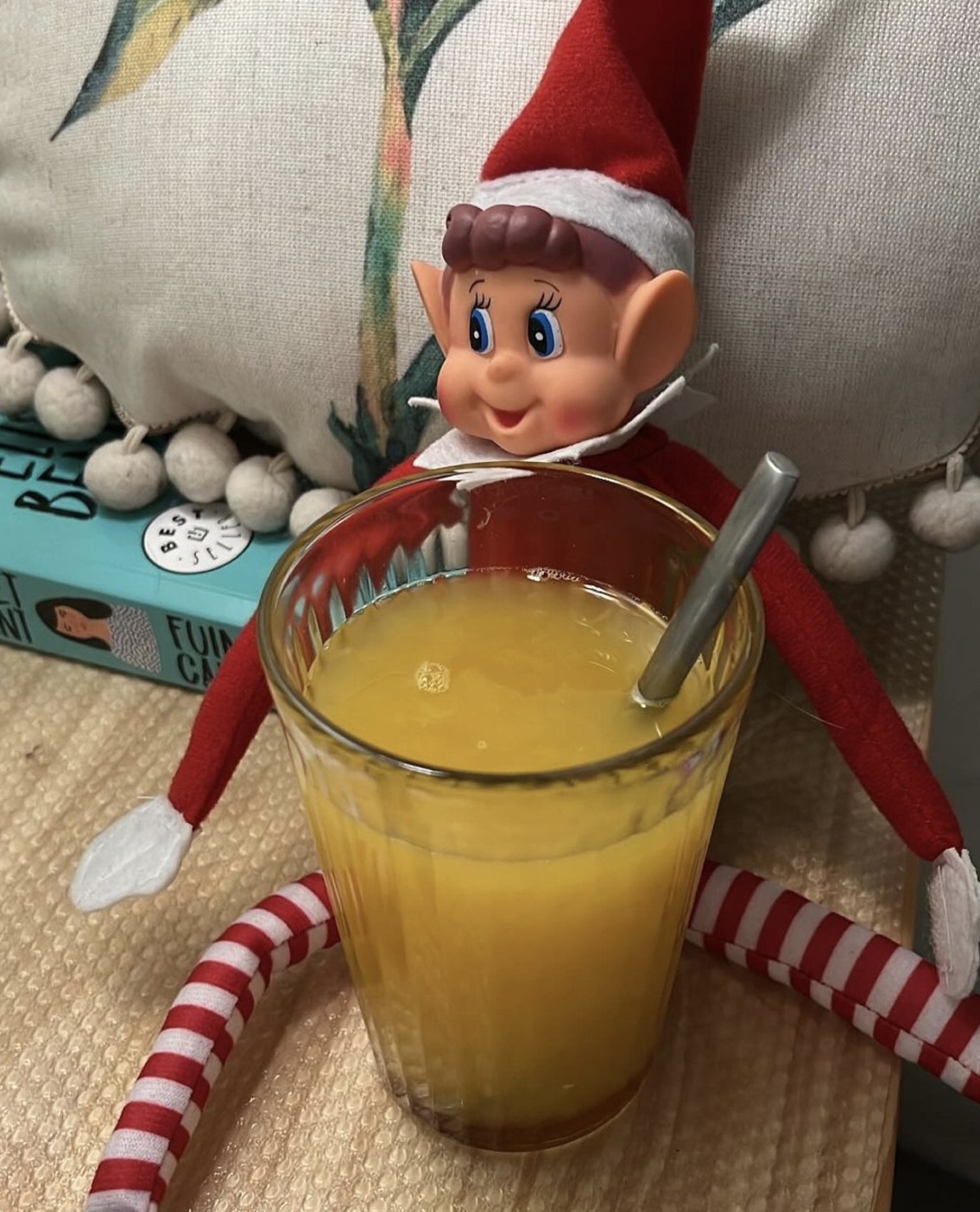 El elfo travieso recibe a los más pequeños por la mañana con una sonrisa y un vaso de fresco zumo de naranja.