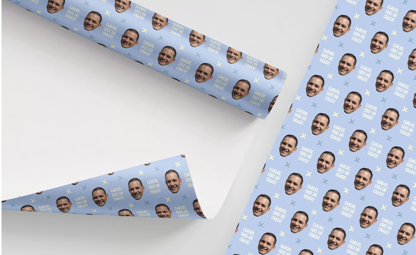 En esta primera idea para envolver regalos de forma original, ¿a quién no le haría ilusión recibir un papel con su cara? Es una excelente manera de sorprender y gastar una pequeña broma.