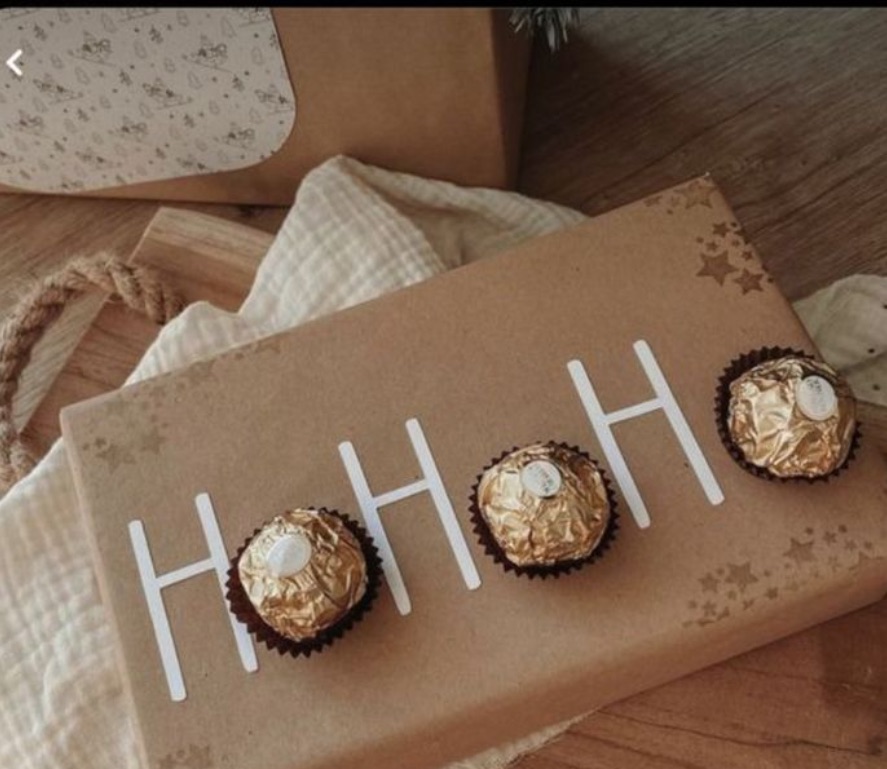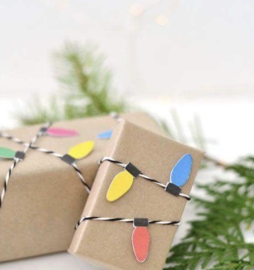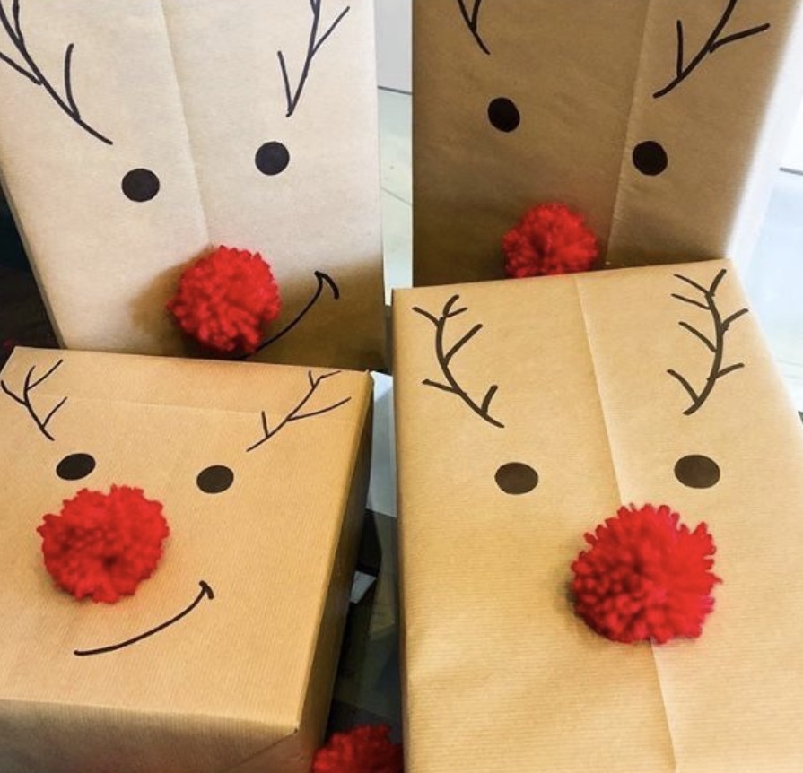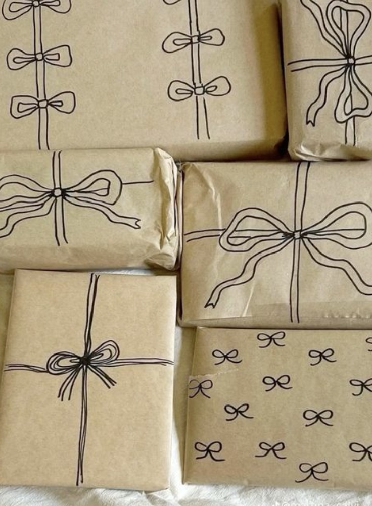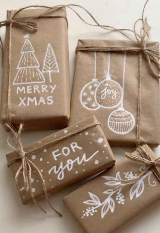 Para realizar esta idea, solo necesitas papel kraft y un rotulador blanco para resaltar cualquier imagen navideña.