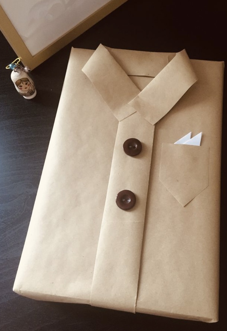 Esta idea tan original simula una camisa de traje, y solo necesitas papel kraft y una cartulina marrón para representar los botones de la camisa.