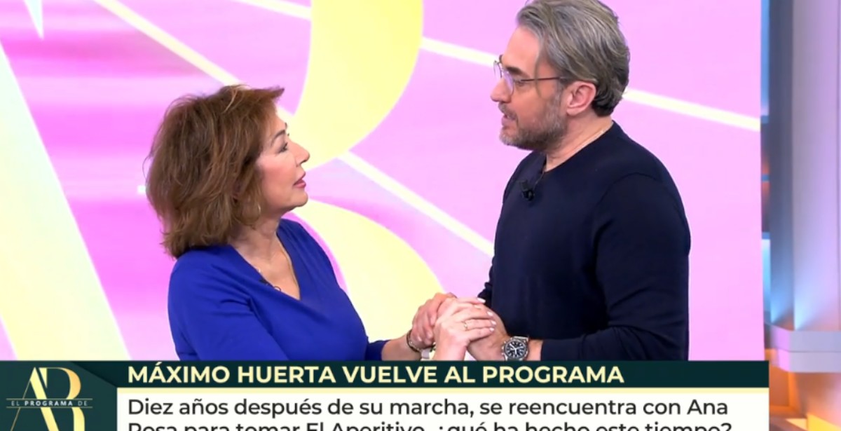 "Le fui a buscar y le encontré. Ha pasado mucho tiempo, tiempo en el que él ha hecho muchas cosas y yo también. Hoy se incorpora a este Aperitivo (la nueva sección del programa) Máximo Huerta", dijo Ana Rosa Quintana para dale la bienvenida.